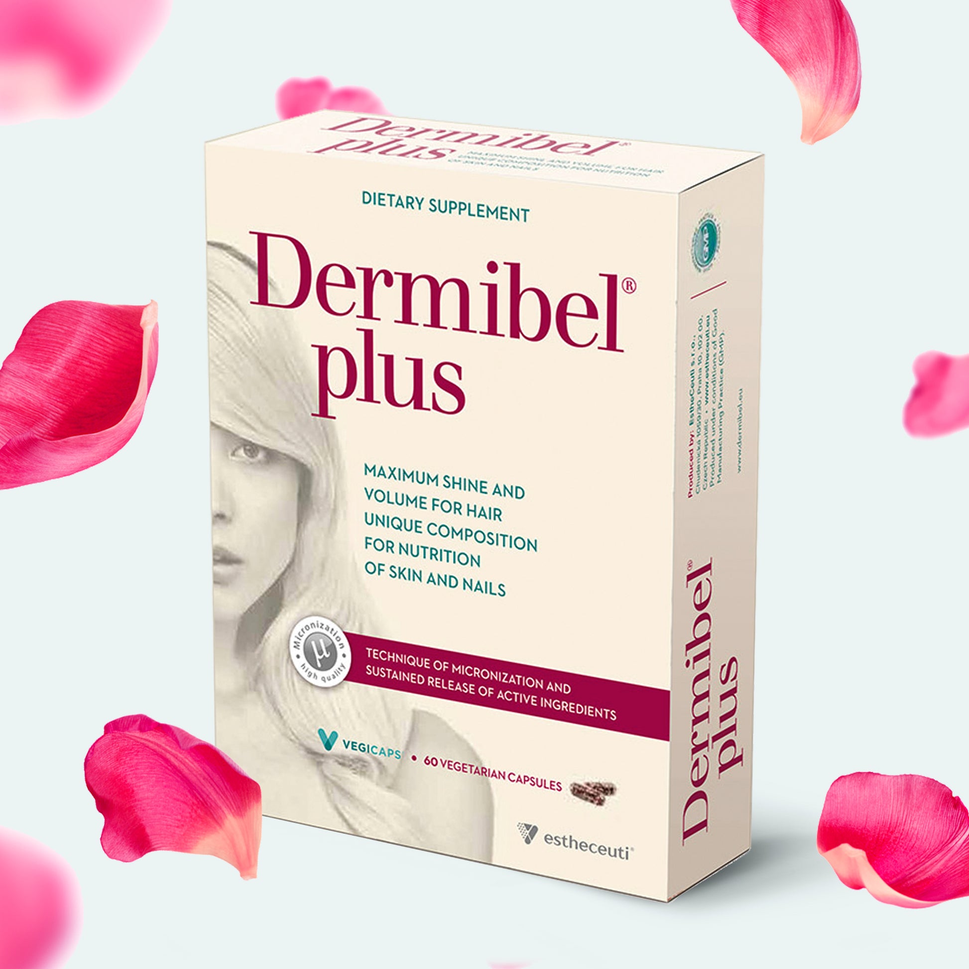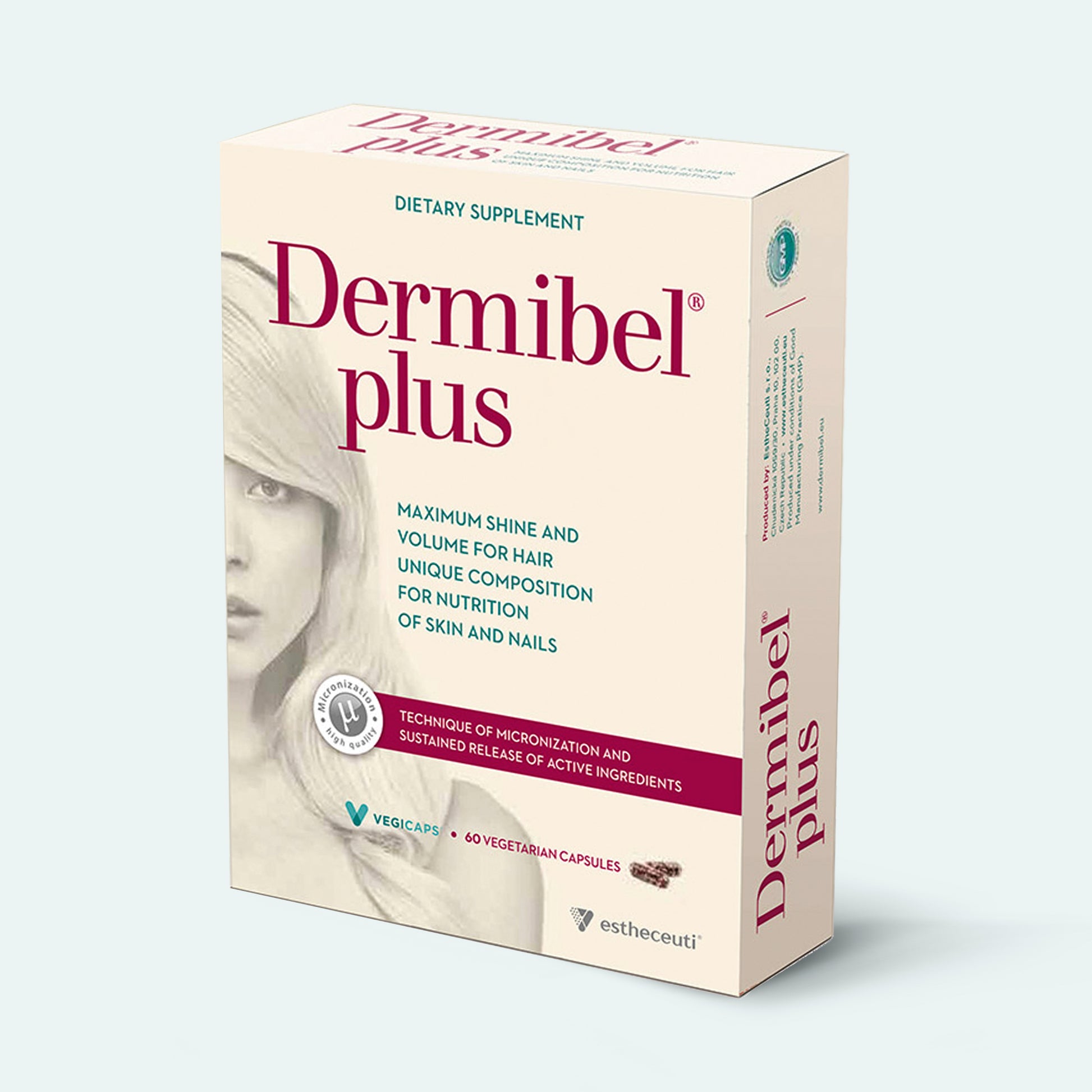 Thanks to advanced micronisation technology, the active ingredients are absorbed faster and more effectively. The body can thus make better use of the formula without the need for high doses. Dermibel® Plus thus delivers maximum results. In addition, the material from which the capsule is made is purely vegetarian. Cellulose fibres are used in its production, ensuring greater stability and longer effectiveness of the active ingredients. It does not contain animal gelatine, which is more difficult to break down and can unnecessarily burden the body.
