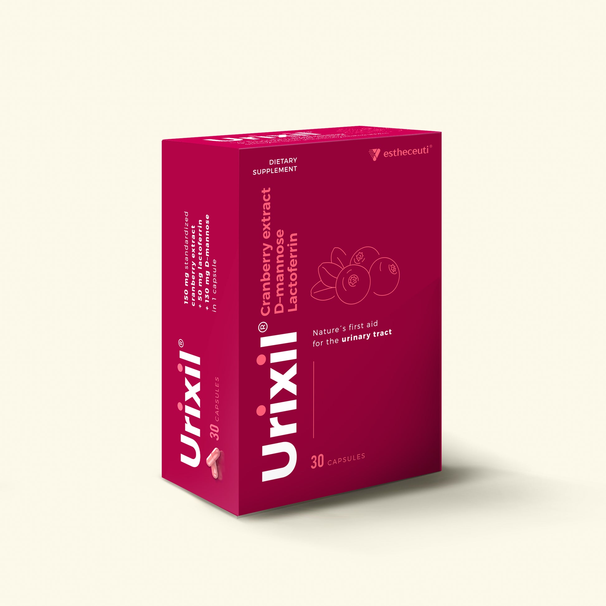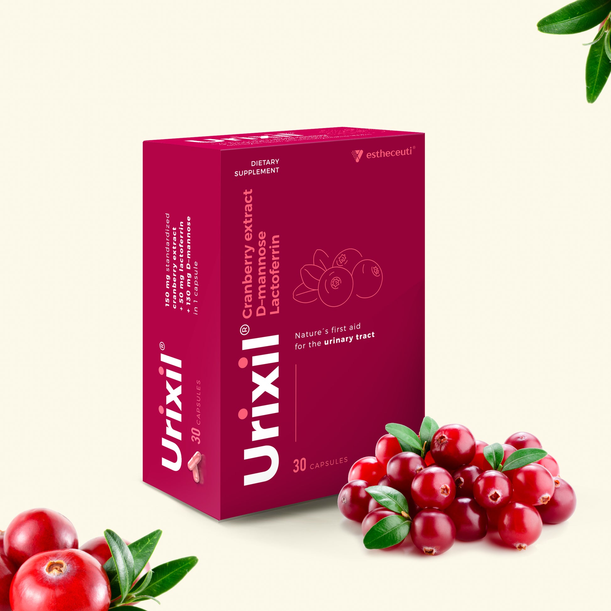 The Urixil® dietary supplement is a combination of three active ingredients used to treat urinary tract discomfort. The extract from whole Vaccinium macrocarpon cranberries is standardized for proanthocyanidin (PAC) content, with a daily dose of the Urixil® dietary supplement providing up to 45 mg of these active ingredients. Lactoferrin is a naturally occurring protein derived from bovine colostrum. D-mannose is a simple sugar that is not metabolized in the body and passes into the urinary tract, where it acts exactly where it is needed. The capsules are made from hydroxypropyl methylcellulose, which means they are also suitable for vegetarians and do not contain animal gelatin. Urixil® is a modern and gentle dietary supplement designed to effectively support the urinary tract, meeting the needs of today's healthcare.
